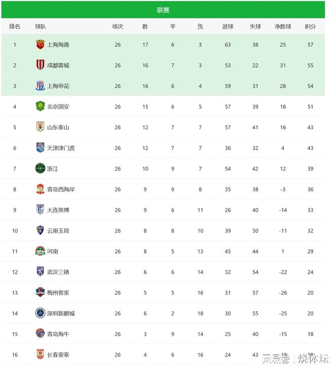 超级联赛排名:山东·塔尚(Shandong Taishan?